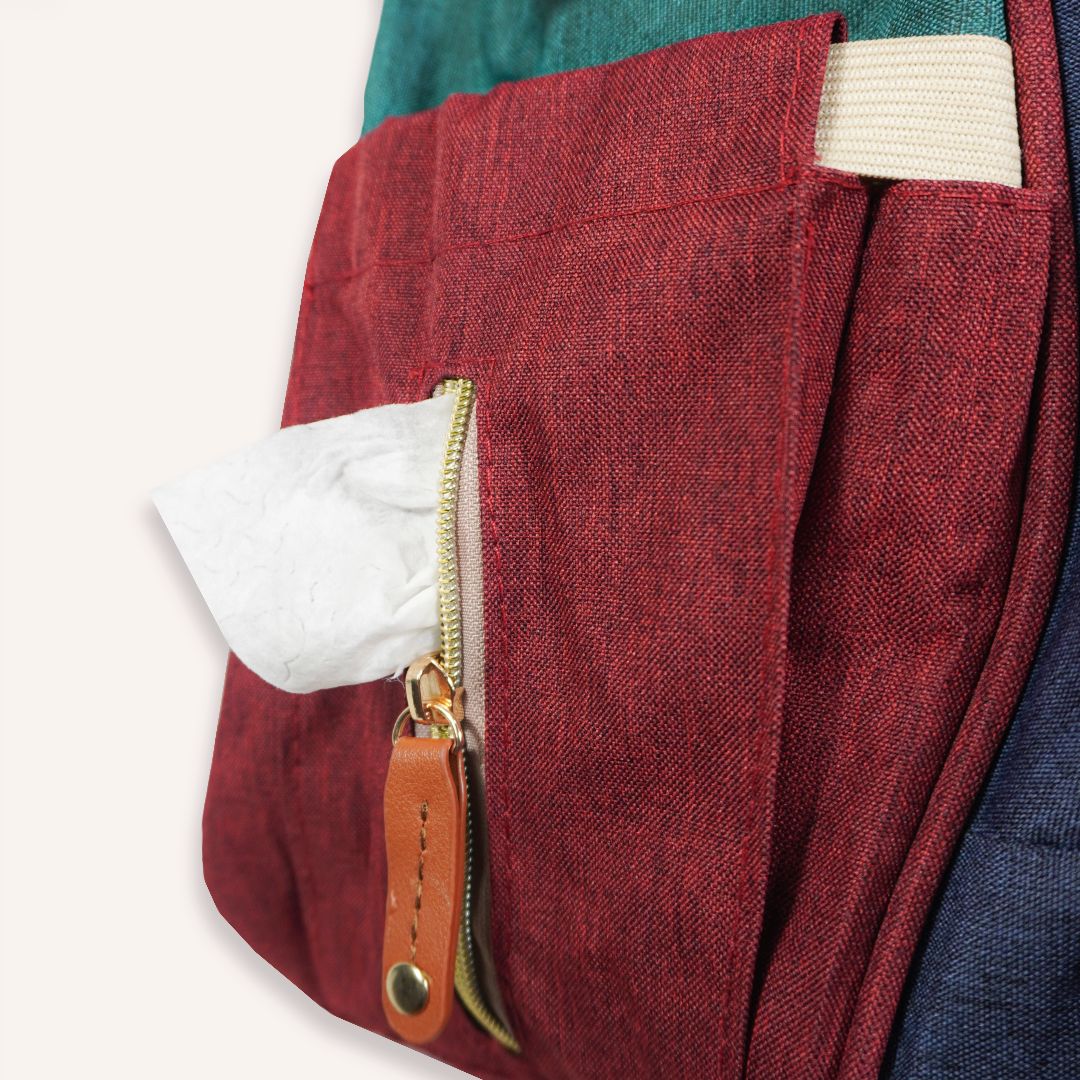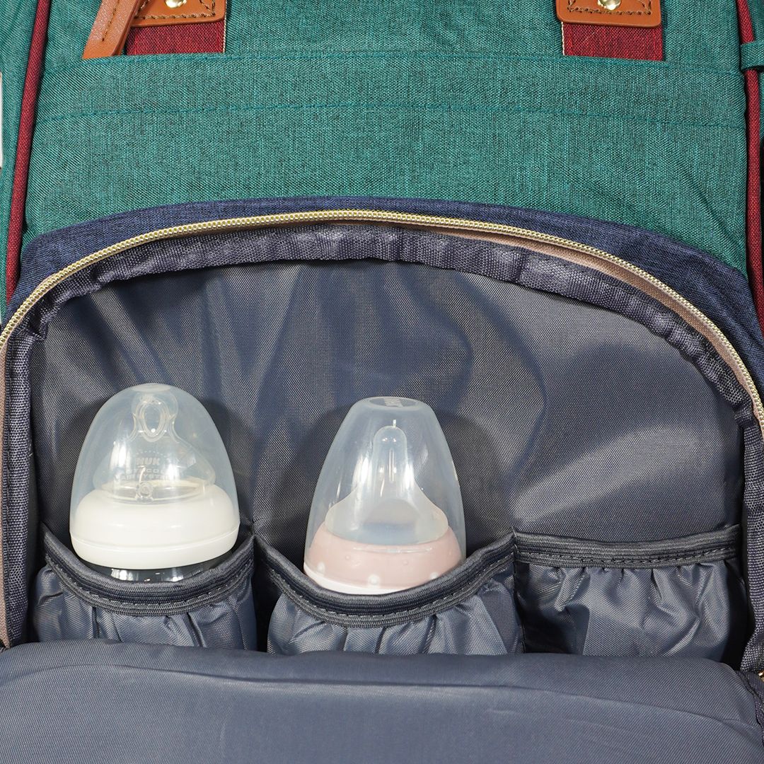 La mochila está hecha de material impermeable, asegurando que los pañales y la ropa de su bebé permanezcan secos incluso en condiciones húmedas.