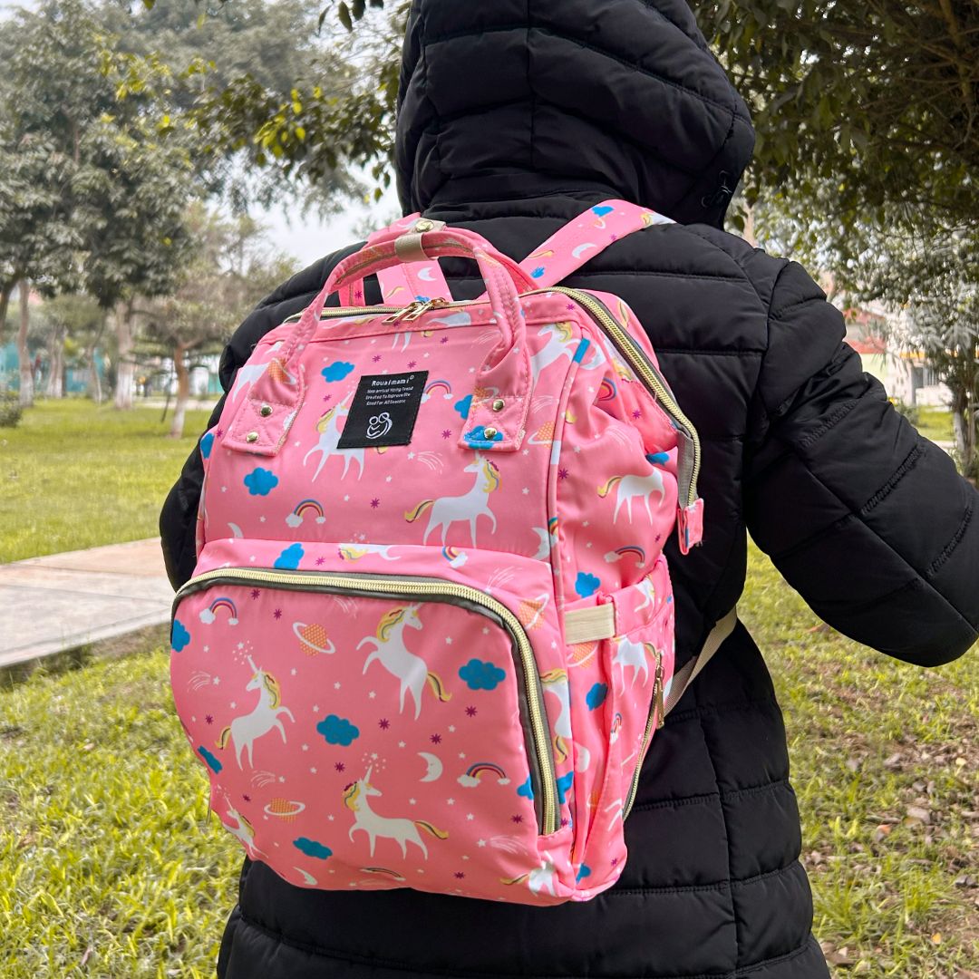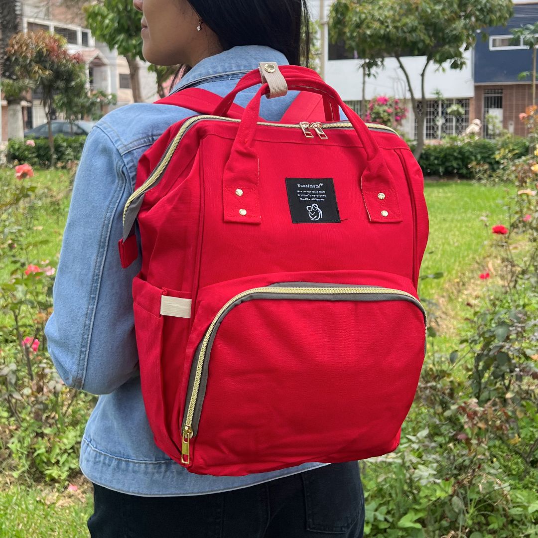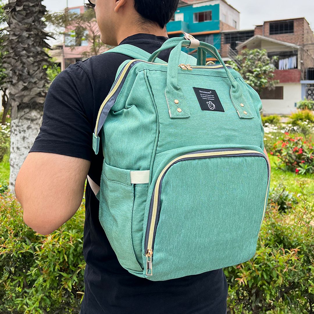 Mochila pañalera de mamá (Impermeable), Organizador de gran capacidad, Monedero, Cintas ajustables para colgar en carriola, Bolsillo térmico, Bolsillo laterales para tomatodo y pañitos húmedos, Bolsillo secreto para documentos, billetera y celulares.