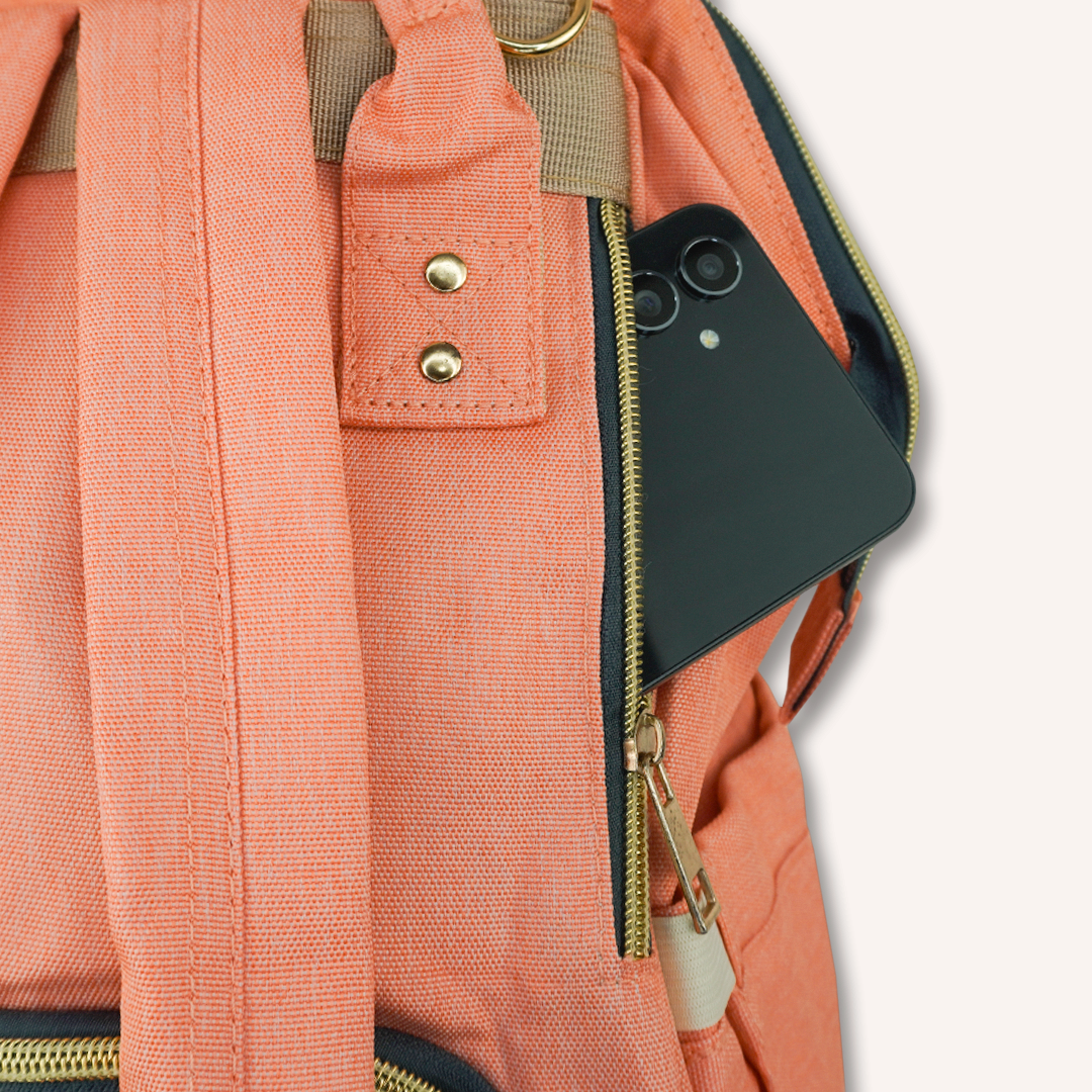 La mochila está hecha de material impermeable, asegurando que los pañales y la ropa de su bebé permanezcan secos incluso en condiciones húmedas.